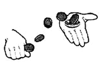 Une simple petite boîte permet à cinq pièces de s'envoler d'une main à l'autre... comme des anges ! |