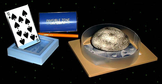 Lorsque Lubor FIEDLER décida de créer spécialement pour Tenyo, il choisit de chercher un tour qui utiliserait des objets du quotidien. C'est ainsi qu'il porta son choix sur un stylo à bille du modèle le plus commun. Il chercha tout d'abord un effet de pénétration, puis se tourna vers l'idée d'un espace dans lequel des objets seraient invisibles. Vint ensuite l'idée du ressort qui se trouve au centre de l'appareil : non seulement il renforce l'idée de vacuité et créé un prolongement visuel au stylo, mais il contribue également à égarer les soupçons des spectateurs (on pense généralement que le ressort est un élément indispensable). Dans le prototype original de « Invisible Zone », il fallait connecter le stylo au gimmick lors de son entrée dans l'appareil, Shigeru SUGAWARA proposa un mécanisme pour éviter cette manoeuvre délicate et c'est dans cette version que le tour fut produit.