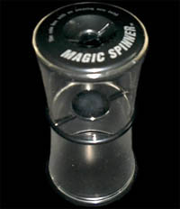 | MAGIC SPINNER Créateur : Inconnu La toute nouvelle tirelire de Tenyo est moins magique, mais plus « gag »: Une pièce y est introduite par la fente du couvercle, elle s'arrête quelques instants sur une plate-forme à mi-hauteur pour y tourner comme une toupie, puis elle tombe au fond de la boîte. Cette tirelire peut contenir environ 150 pièces. Le corps de Magic Spinner est transparent, tandis que le couvercle et la base existent en différentes couleurs, la plate-forme peut être en "Silver" ou "Gold". Cette tirelire est également diffusée sous le nom "SUPER SPIN BANK". |