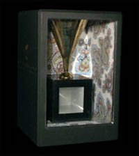 DRACULA BANK Une pièce est placée dans les mains du célèbre vampire. Dracula et la pièce disparaissent en passant devant un miroir... rien de plus normal ! Existe avec deux versions de décor (rouge ou bleu). |